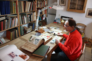 ![]() Lothar beim Studium von antiken Postkarten und Bildern |